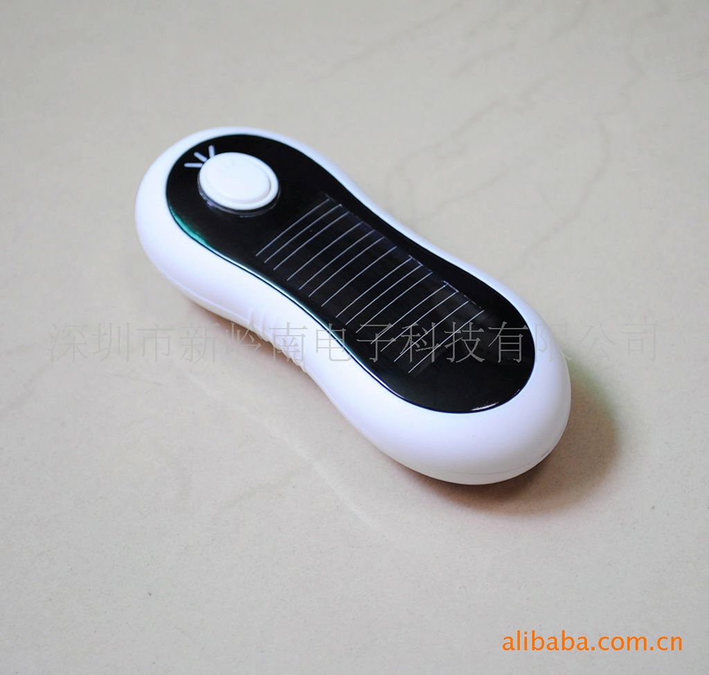 产品尺寸:8*3.5*1.8CM装箱尺寸:44.5*27*27.5CM,300个/箱毛/净重:12(11.3)KGS产品介绍:1.用太阳能只需2小时产品能充满电.2. 2个LED照明功能.3.照明时间:1小时 产品规格:1.材质:ABS、PS2.LED灯的规格:¢5; LED的亮度:8000~12000MCD;3.电池类型:太阳能电池5V 25MA,内置电池3.6V 40mAh锂电池4太阳能板规格太阳能板尺寸:43*25mm5.太阳能充电2小时充满产品,