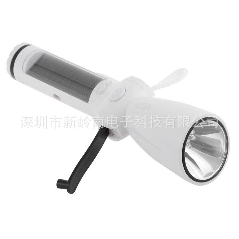 产品介绍: 1.可手摇充电or外接电源充电or太阳能充电 2.AC马达 3.FM/AM收音 4.前面7个LED照明灯5.带闪光警报