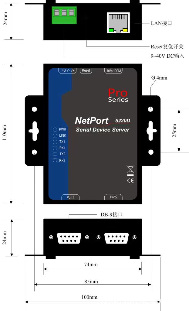 Model 5220D是两串口RS232/RS422/RS485设备联网服务器(以下简称:串口服务器)是我公司自主研发的串口设备联网产品,其中RS232/RS422/RS485可以任意组合使用(客户可定制)。采用32位处理器,结合高效的嵌入式系统,使设备运行更加安全、稳定。5220D让您无需投入大量资金来进行更换或升级,就可以让原有的RS-232/485串口设备立即具备网络互联能力,为串口数据信息提供高效、安全、稳定的数据通道。5220D被广泛应用于通信、控制领域,如电力监控、机房监控、PLC、智能电表、煤气表、生物识别装置、读卡器等环境,是连接串口设备及TCP/IP以太网络的桥梁。