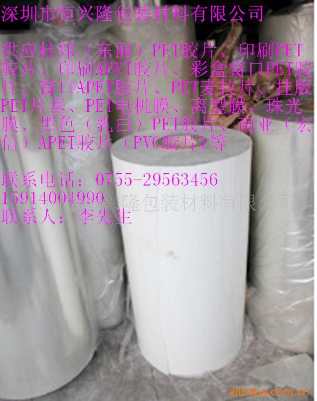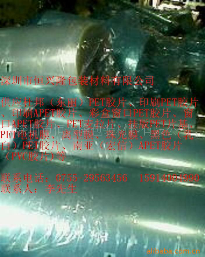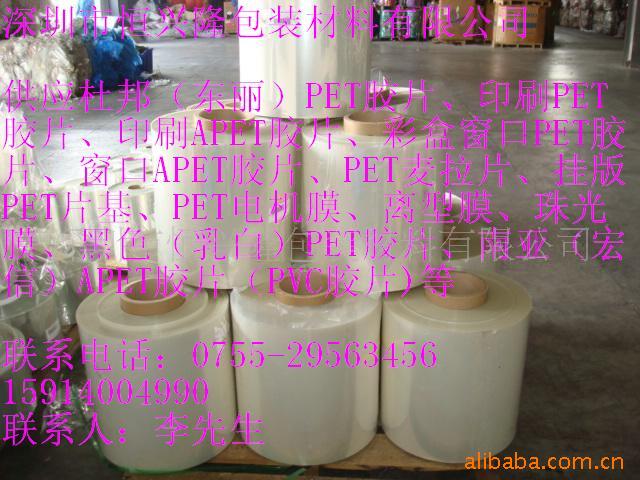 深圳市恒兴隆包装材料有限公司主要产品有:PET胶片、APET胶片、PVC胶片、PP胶片、PETG胶片、GAG胶片等、三层片、透明片、耐寒片、防雾片、 防静电片、导电片、滑爽片、颜色片、等各类片材。规格:厚度:0.012-1.5MM、宽度:1-3300MM. 长度可按贵司要求分切。