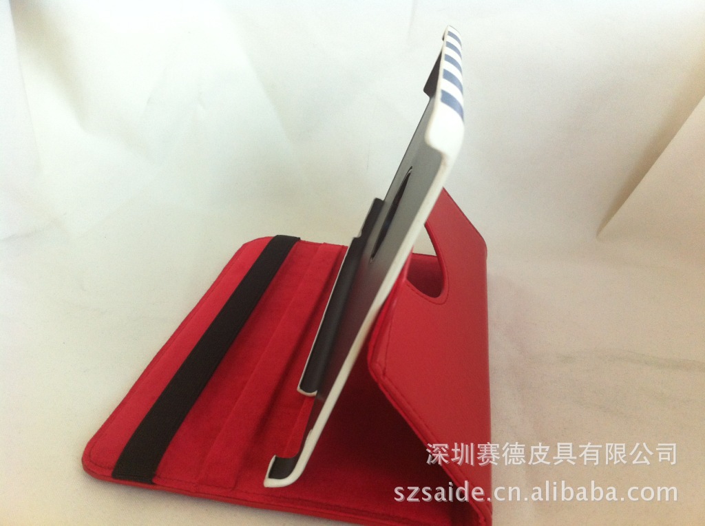 4.支撑设计:内部卡槽能够牢固地固定你的爱机,却绝不会划伤它;360旋转皮套让iPad。功能完美体现。三个支撑卡位设计,多角度支持ipad使用。