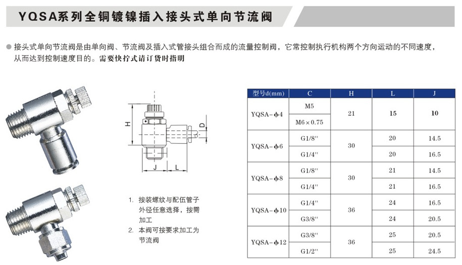 YQSA接头式单向节流阀 深圳永瑞气动接头 欧晟机械 永瑞气动接头