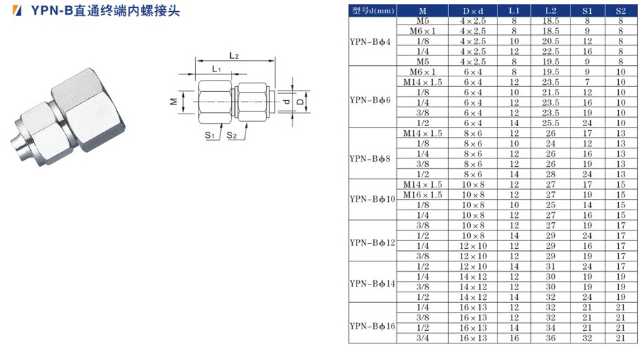 YPN-B 直通内螺接头 深圳气动接头 欧晟机械 深圳永瑞气动