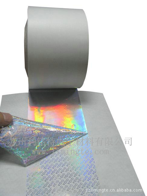 激光防伪标签材料,是通过激光制版,将影像通过光学的原理制作在塑料薄膜、纸类材料上,使标签表面产生五光十色的衍射效果,如结合防伪字模结构及易碎纸材料,将使激光防伪效果得到更进一步提升,使产品的防伪级别、功效得到更好的改善。