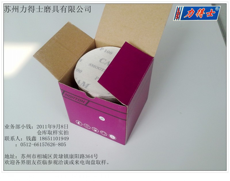 苏州力得士磨料磨具有限公司,我公司自有厂房,专业从事抛光材料的生产和销售,主要产品有圆盘砂纸片,钢纸砂盘,抛光盘,及其它研磨设备,耗材.