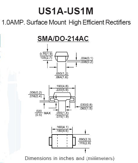 US1M 1A/1000V VF:1.3V 50NS SMA LGE