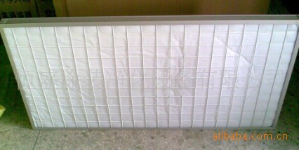 说明: 初效过滤器以无纺布、玻璃纤维等为滤料,楔型折叠造型以加大过滤面积,金属丝网夹紧或内置金属龙骨架支撑,配以金属外框,制成板式结构。具阻力小,寿命长,可冲洗,经济耐用等特点。 结构: 初效过滤器结构一般分为龙骨架和框骨架。龙骨架的特点是结实,滤材分布均匀,但制作费时费工。框骨架的特点是更换滤料方便,制作省时,强度比龙骨架略差。 滤料: 滤料材质可根据客户需要,采用无纺布、蓬松玻纤毡、塑料网或金属丝网。最常用的是无纺布,玻璃纤维。效率可达初效或中效。 应用: 初效空气过滤器一般用于中央空调和集中通风系统预过滤,大型空压机预过滤 ,洁净回风系统, 局部高效过滤装置的预过滤。