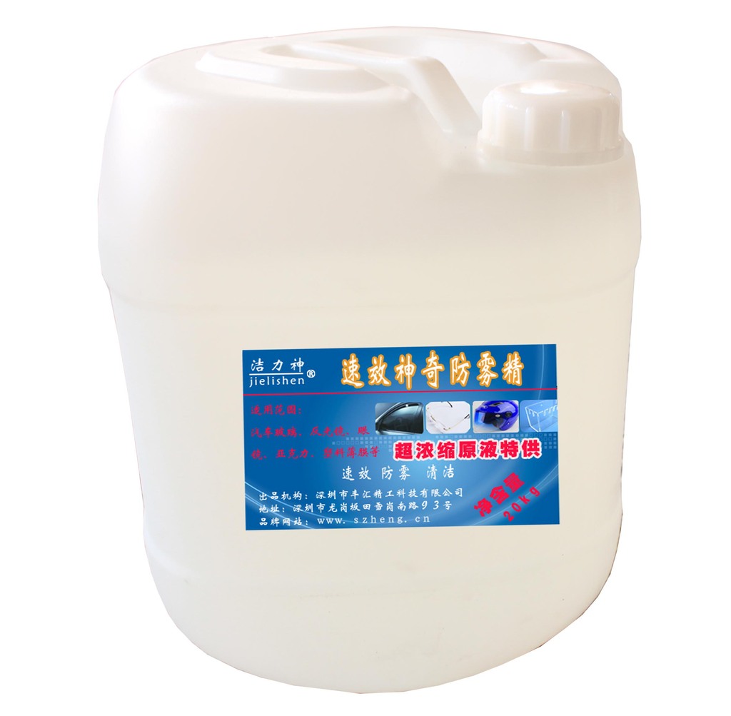 洁力神 防雾剂采用了新一代分散防滴材料以及纳米有机活性剂,经防雾剂处理过的玻璃表面有一层超亲水纳米膜,使雾汽与之接触后成低冰点混合物,防止结雾。维持时间可长达15天。且无毒、无异味、无腐蚀。