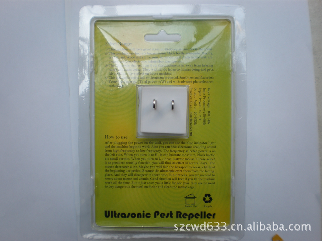 3、 本机发出的超声波段对于人类及家庭宠物等不会任何伤害,并且不干扰家用电器。