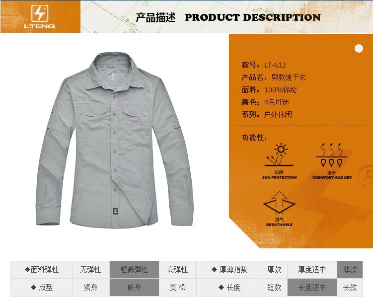 厂家批发 正品LT男速干衣 超透气排汗速干长袖衬衣休闲骑行户外服