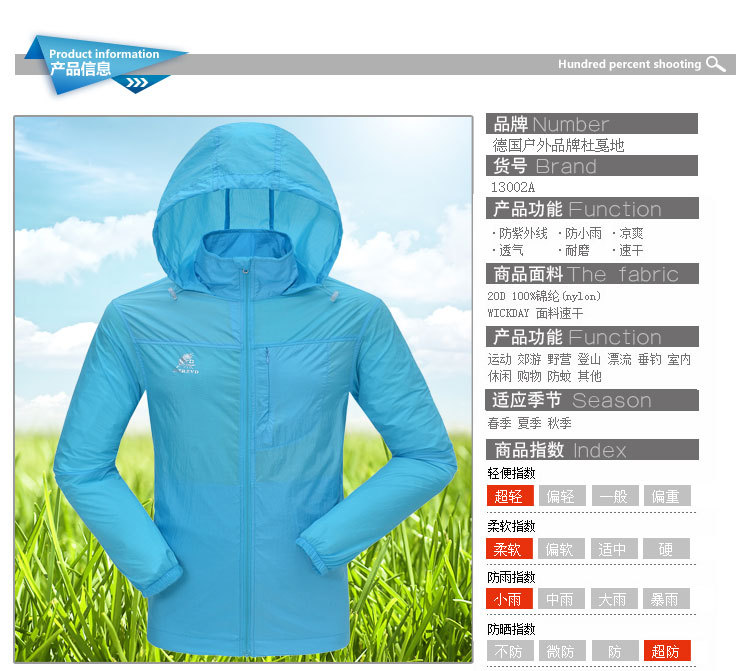 清仓甩卖 德国DZRZVD皮肤衣防晒防紫外线皮肤风衣 女速干衣户外服