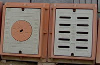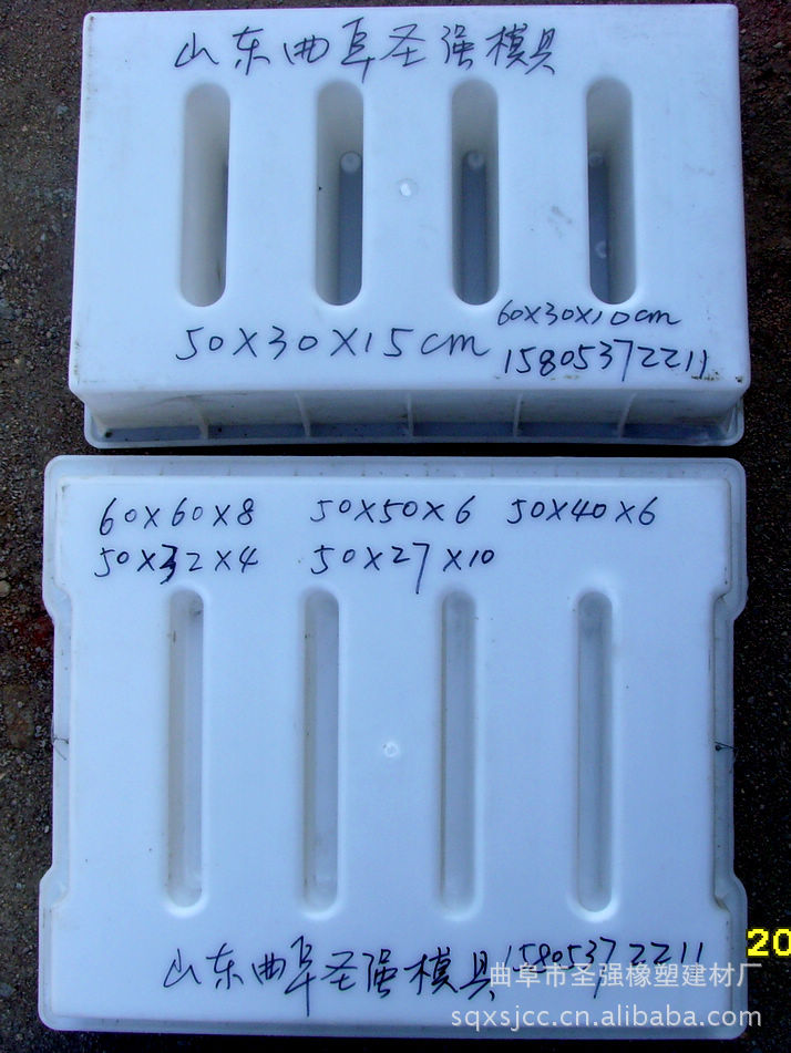 8-1,下水箅子"成套"塑料模具--座(圈) 规格:CM35*25*5单排孔 /45*30*6 单排孔/ 50*35*6单排孔50*38*6双排孔/50*40*6单排孔/ 50*50*6单排孔 /60*40*6单排孔/ 65*50*7双排孔/72*32* 6三排孔/75*45*7双排孔 .8-2,下水箅子"成套"钢制模具规格:CM 75*45*7/ /60*40*6