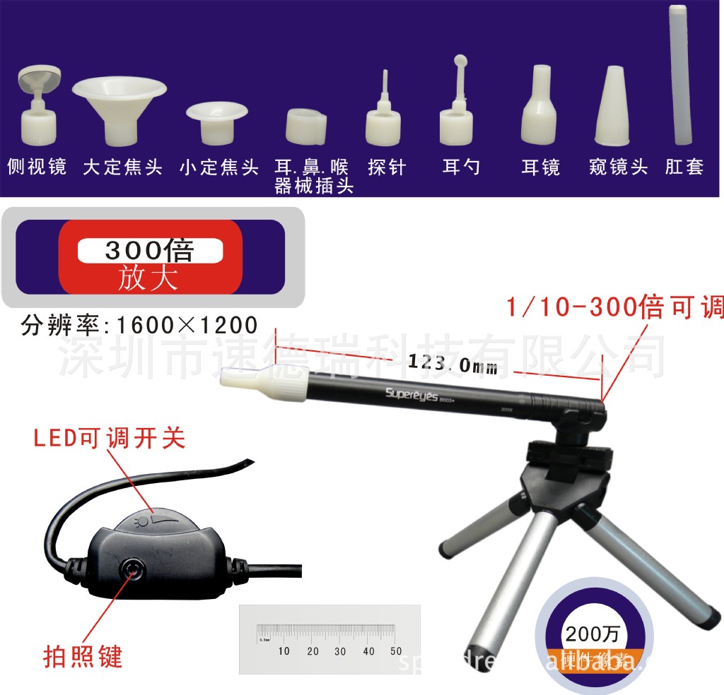 | 产品特色: | 显微镜硬件200万像素,配备侧视镜、挖耳勺、棉签棒及多种观察支架,功能强大、高清晰。 |
