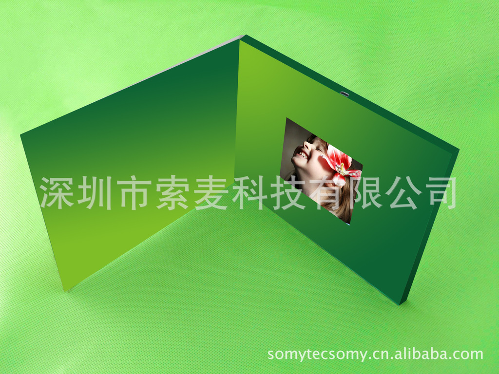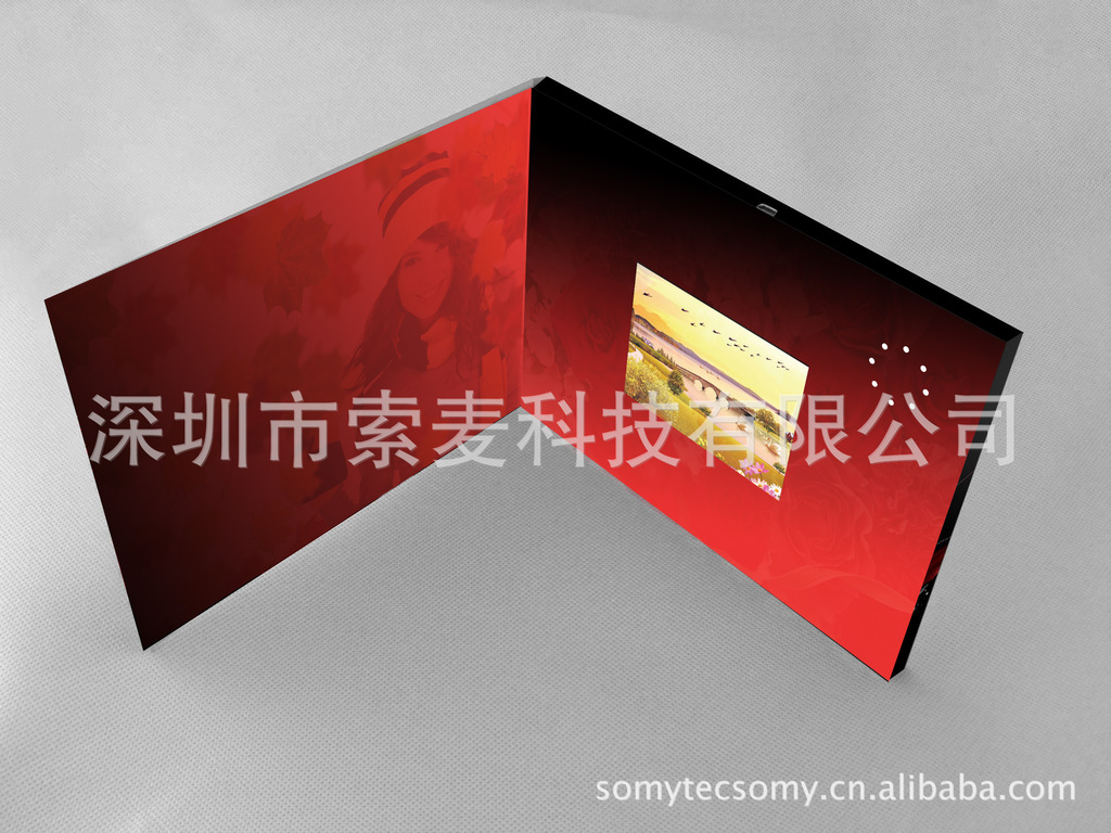打开贺卡时视频及声音开关同步打开即开始播放内存里面的视频,用USB数据线将贺卡与电脑连接即可充电以及拷入个人视频、产品广告片等文件,贺卡闭合即为开关关闭,视频播放停止。视频贺卡产品适合节日及商务礼物,亦可作为企业产品广告播放宣传册,生动实用。