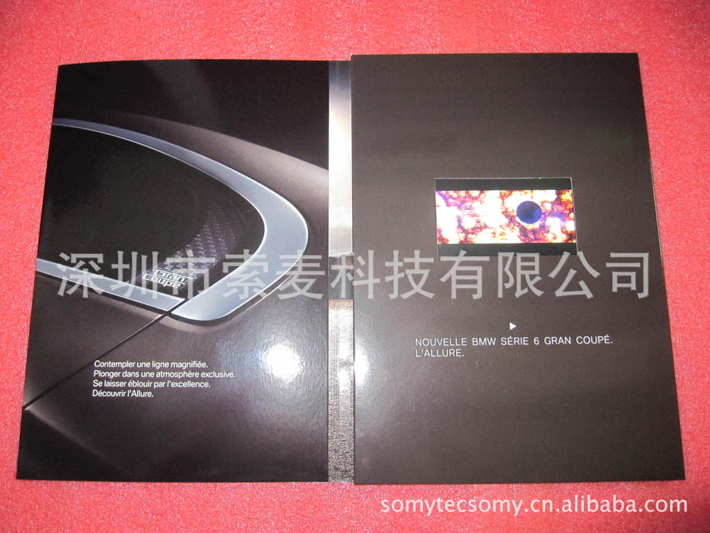 打开贺卡时视频及声音开关同步打开即开始播放内存里面的视频,用USB数据线将贺卡与电脑连接即可充电以及拷入个人视频、产品广告片等文件,贺卡闭合即为开关关闭,视频播放停止。视频贺卡产品适合节日及商务礼物,亦可作为企业产品广告播放宣传册,生动实用。