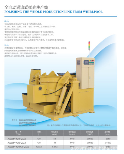 全自动涡流式抛光生产线是基于涡流抛光原理,将上料、抛光、出料、分选、清洗、烘干等工艺流程整合为一体,采用PLC程序控制,使用前根据不同工件的抛光要求合理的设定好各个工艺的时间,使用时只需按一下自动运行,就可以实现所有工艺的循环工作。真正的实现了整个抛光过程的无人化和循环化,大大的节省了劳动力和时间,从而降低了生产成本,为企业带来更大的利益。