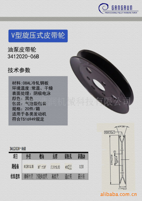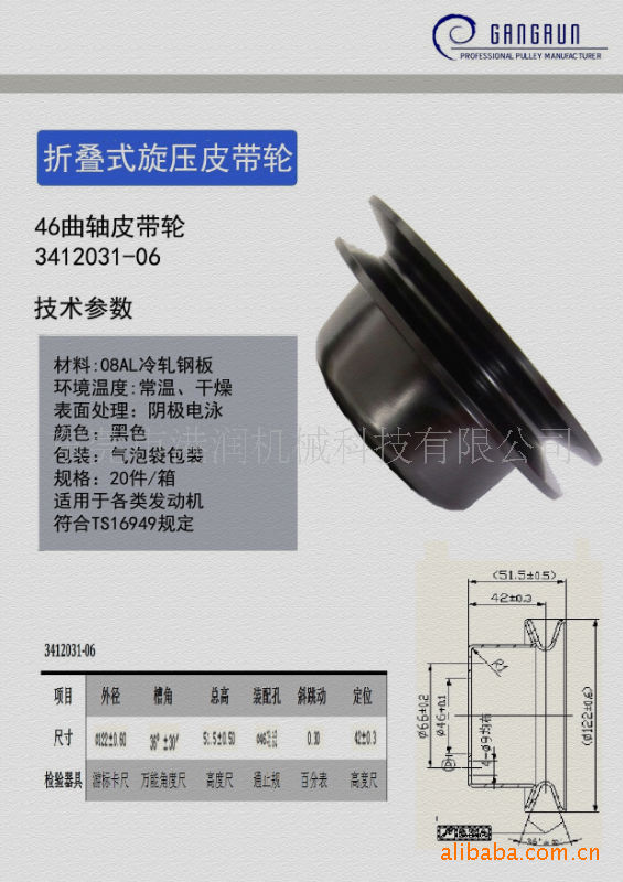 2、 减轻产品的重量却能延长使用寿命,旋压式皮带轮与铸铁皮带轮相比的优点是采用旋压工艺制成的(无屑加工),结构轻、省材料,因而转动惯量小,使用寿命长,是一种节料、节能的新产品。