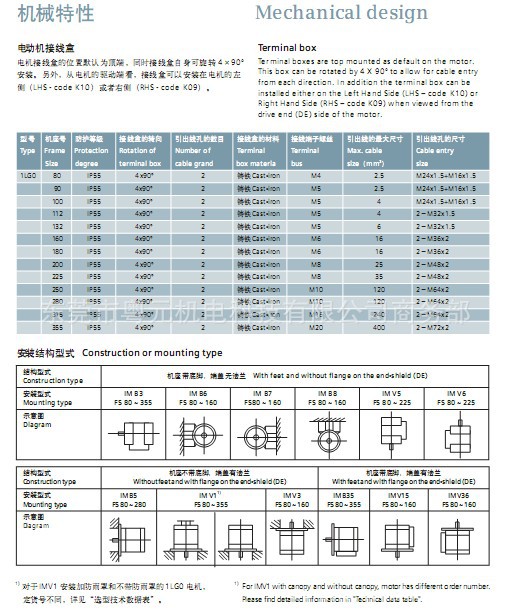 | 过载倍数: | 1LGO+系列都能承载1.5倍的额定电流 | 安装方式: | B3/B5/B35/B6/B7/B8 V1/V3/V5/V6/V15/V36 |