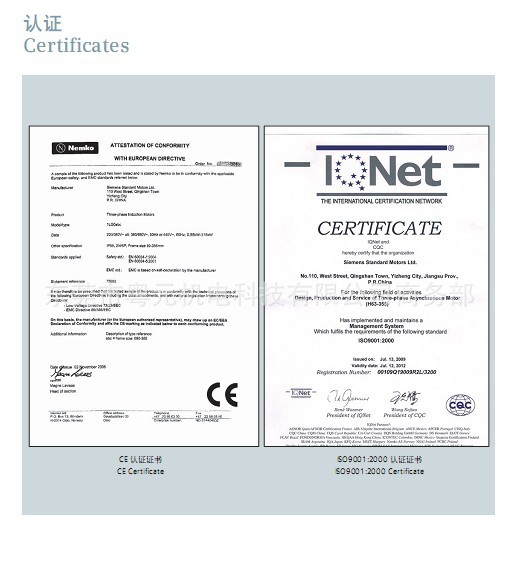 | 认证标志 | 欧洲CEMEP效率等级:EFF2(1.1-90 kW,2、4极) 认证证书 CE认证证书 |