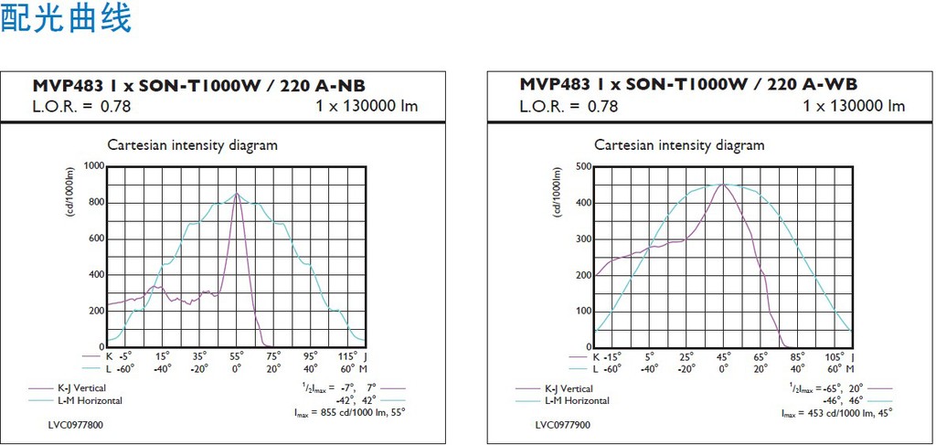 • 非对称配光,锐截光角在75°,溢出光少,水平安装时,眩光和上射杂散光得到有效限制