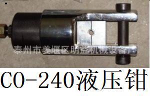 CO电动液压钳(分离式液压钳):本产品配套油泵可适合各种电缆、导线、地线等产品的压接,出力大,压接宽度长可以减少压缩的次数,工作效率极高,采用插入式结构,方便快捷,安全高效,与同类产品相比使用方便安全性更高,有明显优势.产品由手动油泵或电动油泵加上工作头二部分组成,输油软管采用快速接头连接。密封可靠,装拆方便,适用于室内及野外作业,活塞自动复位。 技术参数; 型 号 | 压接力(T) | 工作行程(mm) | 压接范围(mm2) | 自重(kg) | CO-240 | 15 | 20 | 16-240 | 8 | CO-300 | 16 | 20 | 16-300 | 9 | CO-400 | 22 | 22 | 16-400 | 11 | CO-500 | 22 | 22 | 16-500 | 12 | CO-630 | 30 | 28 | 150-630 | 13.5 | CO-1000 | 50 | 30 | 240-1000 | 24 | C0-1001 | 100 | 24 | ¢76铜铝端子套管 | 43.5 |