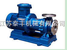 CQB磁力驱动离心泵(简称磁力泵),通常由电动机,磁力偶合器和耐腐蚀离心泵组成。其主要特点是利用磁力偶合器传递动力,完全无泄漏,当电动机带动磁力偶合器的外磁钢旋转时,磁力线穿过问隙和隔离套,作用于内磁钢上,使泵转子与电动机同步旋转,无机械接触地传递扭矩。在泵轴的动力输入端,由于液体被封闭在静止的隔离套内,没有动密封因而完全无泄漏。