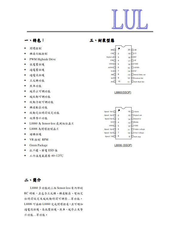 伺服芯片(L8860+L8006、L33060+L8006)…等等;客制化功能芯片更已多达600多种,相信您的需求,我们都能满足。