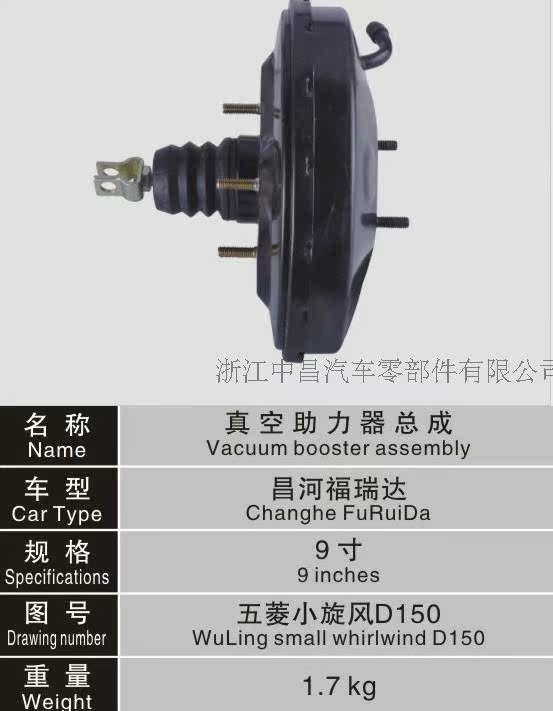 浙江中昌汽车零部件有限公司主要从事汽车制动系统的设计与制造。主要产品:汽车制动器、真空助力器、液压制动主缸和比例阀等四个系列近二十个品种。产品销售覆盖全国,为长安、哈飞、昌河铃木、郑州海马、中航黑豹、江南奥拓、柳州五菱等主要汽车厂商定点配套。