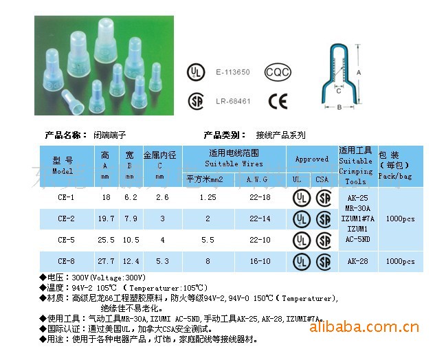 ※特点:外壳为尼龙成型,内部铜管特长,增加电线压接范围,具更优良的导电性并更能夹住电线,即使强烈震动亦不会脱落。