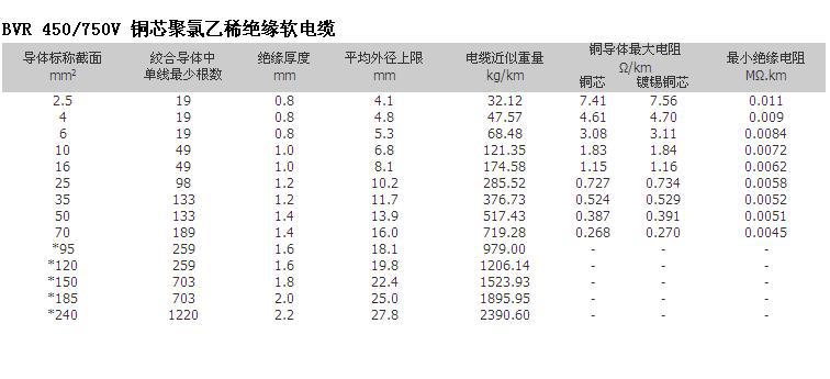 工作温度:正常工作最高温度不超过70℃,BVR-105型工作最高温度则为105℃,电线的敷设温度应不低于0℃;