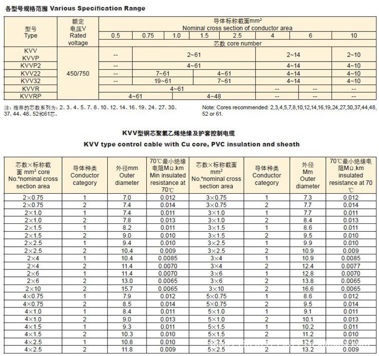 ②根据用户需要,还可提供生产非标型号的产品,如:KVVP2-22、KVVP32等。