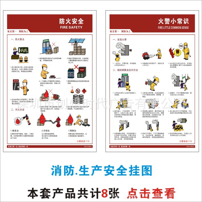 一口价是指单张背胶的价格,尺寸:50*70厘米。鼠标往下滚动可以查看消防安全挂图标语的全套系统的产品图片和各种材质的详细介绍。