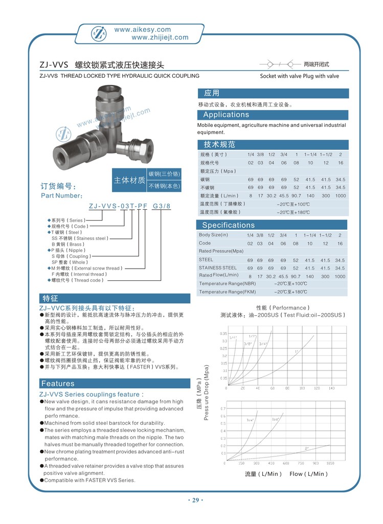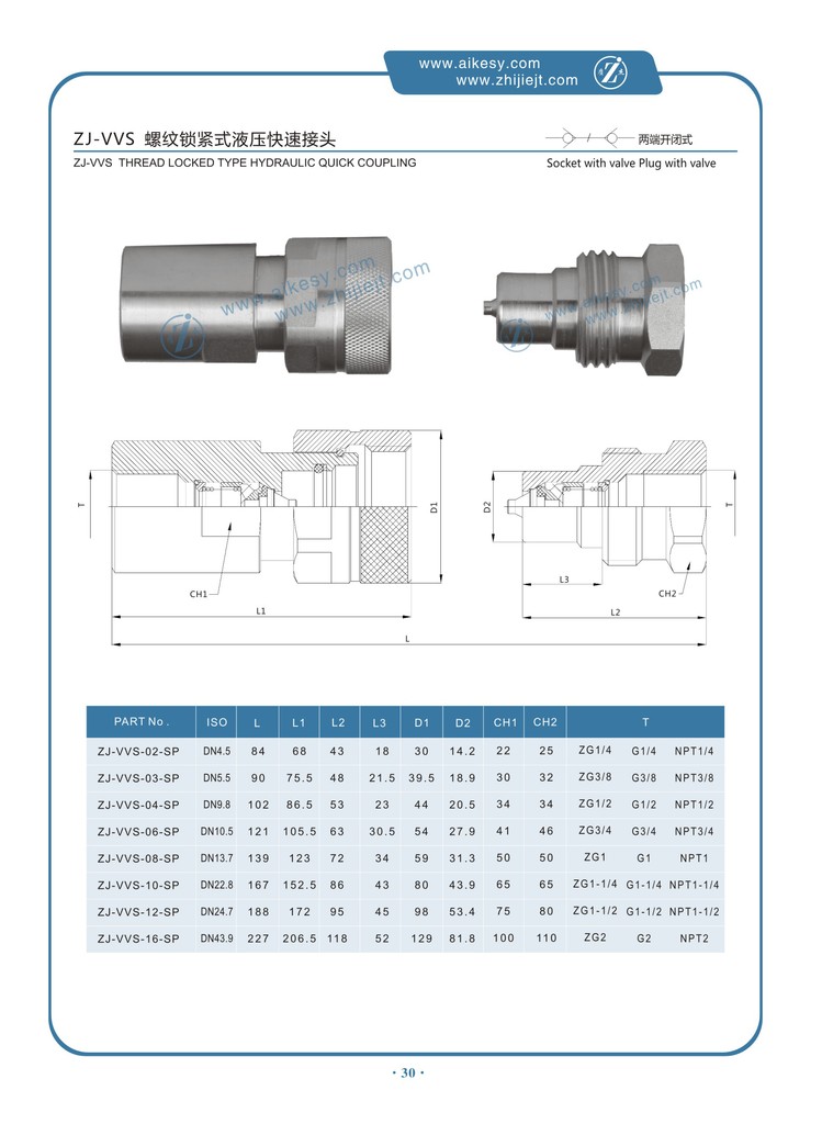 ZJ-VVS液压快速接头 螺纹锁紧式液压快速接头 高品质液压快速接头