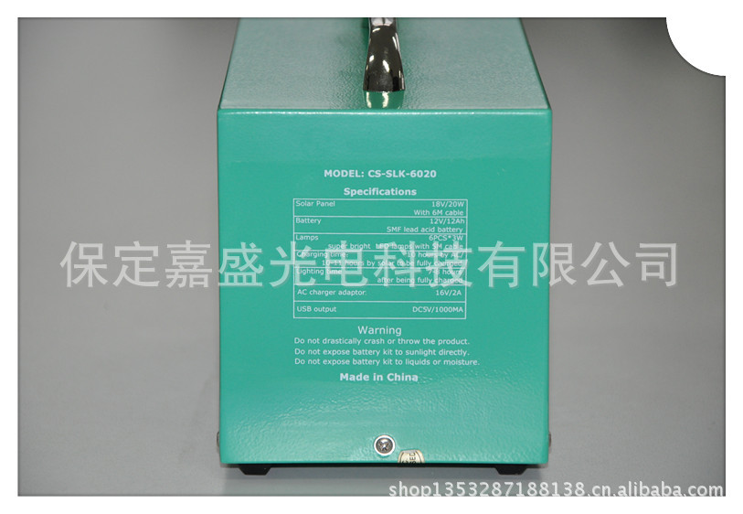 太阳能板:20W单晶硅太阳能板 +6米电线.