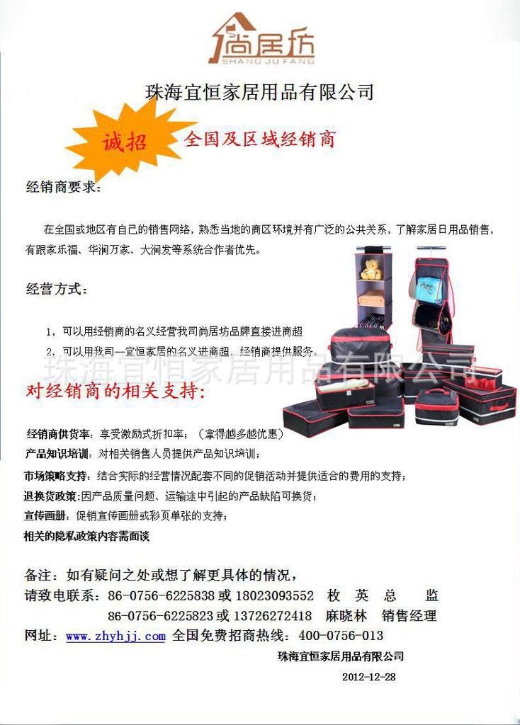 宜恒家居自创建以来,一直致力于“布衣橱、置物橱、脏衣架、杂志架、内衣盒、收纳盒、收纳凳、整理箱、挂袋、餐盒袋等收纳系列产品”的设计研发、销售服务。全系产品拥有完善的专利资质,“尚居坊”品牌,引领家纺家居市场的前沿,“低碳、时尚、美观”的产品定位,让宜恒家居随着消费者的好评,一路前行。