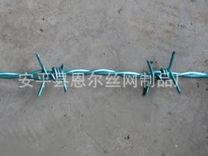 刺绳引由全自动化的刺绳机拧编而成。民间俗称铁蒺藜。成品种类:单丝拧编和双丝拧编。原材料:优质的低碳钢丝(电镀锌,热镀锌,涂塑,喷塑)丝,有蓝、绿、黄等颜色。用途:用于草场边界、铁路、高速公路的隔离防护等。