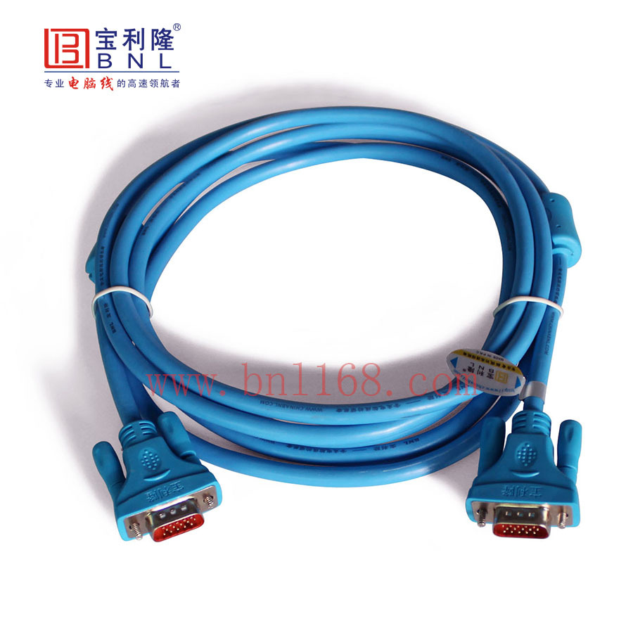 宝利隆天之蓝系列vga线,Vga3+6标准M/M,Vga3+6针对针,外被采用PVC.70P环保无毒胶料,中被采用美国进口发泡PE,符合ROHS环保标准,线材采用高纯镀锡无氧铜,金属编织,铝箔,三层屏蔽及双磁环抗干扰,信号传输极其稳定,外观科技时尚。颜色新颖,手柄新型人性化。