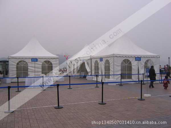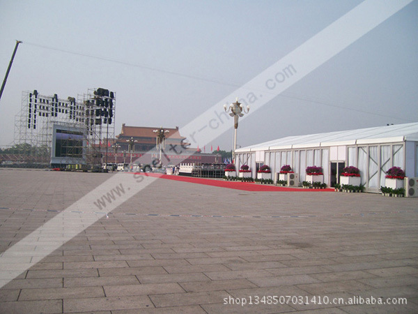 户外临时仓库,工业仓储篷房(帐篷)的特点: 框架由优质钢,铝型材构成,坚固安全。 由高级合成纤维加双层PVC材料制成的遮阳篷布,具有高强度,抗风,防雨,防晒阻燃等优点。 装拆简便,是室外展览的最佳产品。 篷布可折叠,框架拆卸后体积小,便于运输和储存。 单位组合式结构,可根据场地的大小自由增加或分割搭建。 跨度有从6米,8米,9米,10米,15米,18米到50米等。 简易的搭建和拆卸。 篷房内部无需承重支柱,场地得到100%使用。 对搭建场地无特殊要求,一般平地如沙地,草地,沥青地,水泥地和瓷砖地面均可。