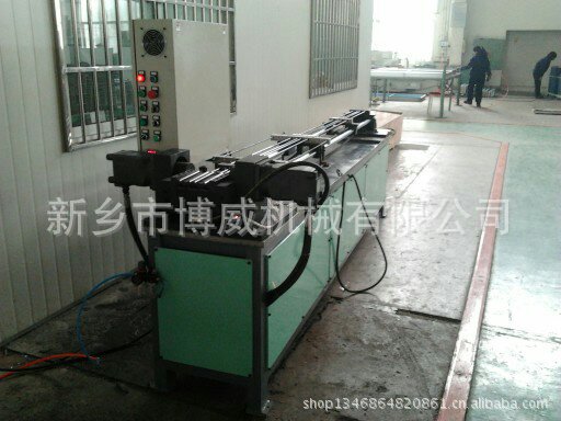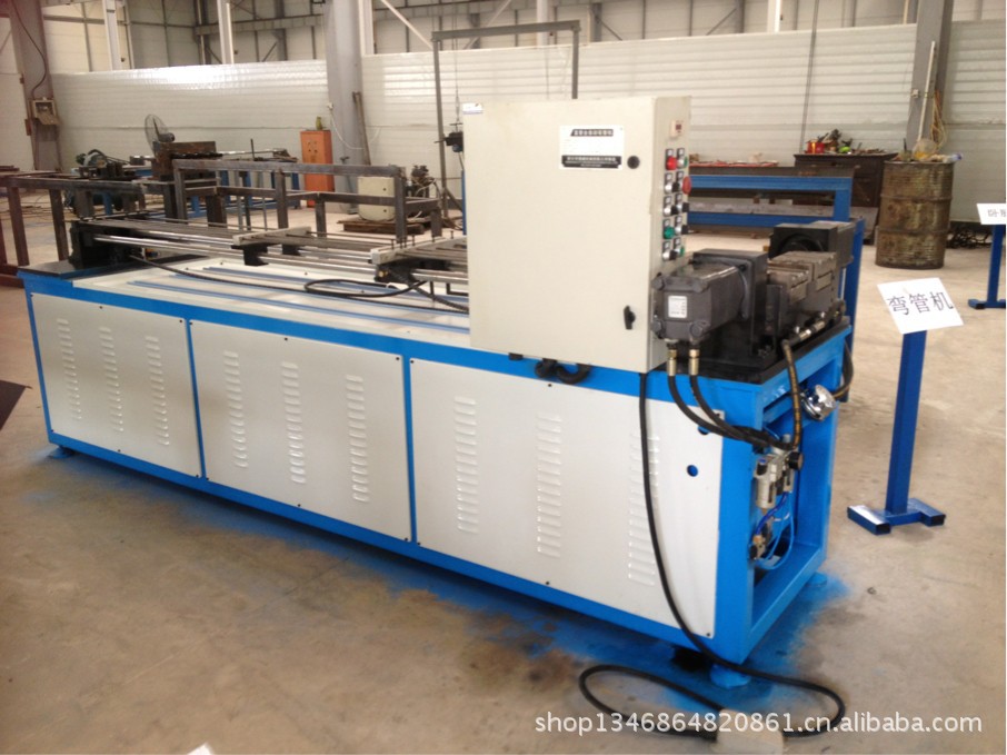 本机是将校直切断后的定尺直管弯制成发卡管的专用设备。由台身、弯曲机构、退料机构、电控系统、液压系统等组成。自动情况下,人工送料后,机器自动进行夹紧、弯曲、放松、退通芯、退料、弯曲后退等动作。U型管靠上、下模具及万向芯轴弯曲成型,产品质量稳定。