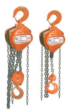 手拉葫芦又叫神仙葫芦、手动葫芦,它是一种使用简单、携带方便的手动起重机械,也称"环链葫芦"或"倒链"。它适用于小型设备和货物的短距离吊运,起重量一般不超过100T。手拉葫芦的外壳材质是优质合金钢,坚固耐磨,安全性能高。手拉葫芦按形状可分为圆形和三角形,圆形系列主要有HSZ型、防爆手拉葫芦;三角形系列主要有HS-C型手拉葫芦、HS-VT型手拉葫芦手拉葫芦工作原理:手拉葫芦向上提升重物时,顺时针拽动手动链条、手链轮转动,将摩擦片棘轮、制动器座压成一体共同旋转,齿长轴便转动片齿轮、齿短轴和花键孔齿轮。这样,装置在花键孔齿轮上的起重链轮就带动起重链条,从而平稳地提升重物。下降时逆时针拽动手拉链条,制动座跟刹车片分离,棘轮在棘爪的作用下静止,五齿长轴带动起重链轮反方向运行,从而平稳下降重物。手拉葫芦一般采用棘轮摩擦片式单向制动器,在载荷下能自行制动,棘爪在弹簧的作用下与棘轮啮合,手拉葫芦吨位为0.5T-100T,标准起升高度为3米。