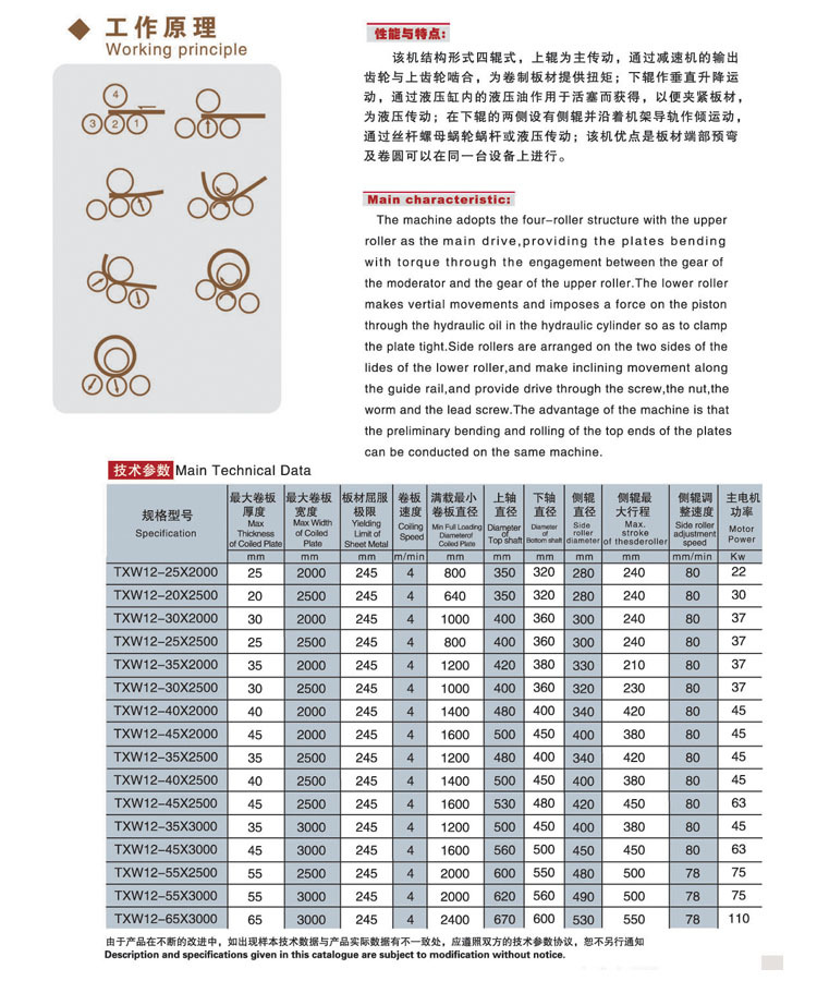 四辊卷板机产品属性