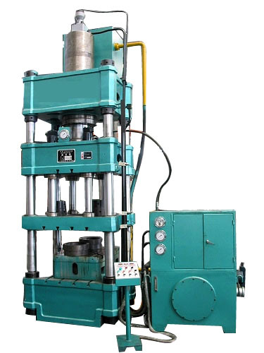 性能特点:计算机优化结构设计,机身可采用框架式或四柱式结构。框架式拉杆预紧结构,精度高、刚性好,四角八面导轨,导向精度高,抗偏载能力强;四柱式结构简单,经济,实用;进口材料油缸密封元件,可靠性高、使用寿命长;移动工作台,方便模具更换;拉深,压边滑块可通过定位销联为一体,实现单动工艺动作;机,电,液一体化安全装置,如油缸下腔支承回路,油缸上下腔互锁回路等安全性优越;进口PLC控制,工作灵敏可靠。