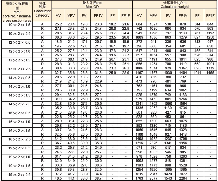 2、需导体为多股软芯时,应在原型号后加“R”表示,如:TX-G-VVPR;