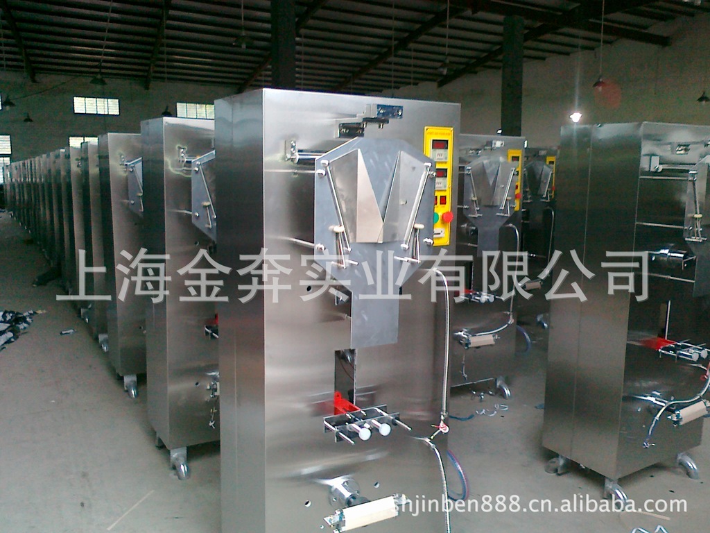 此机械广泛应用于包装牛奶、豆奶、酱油、醋、黄酒及各种液体,整个包装过程:薄膜杀菌、制袋、打印日期、填充、封合、切断、计数可一次性完成。热封温度可自动控制。包装精美、平整,采用不锈钢结构,符合卫生要求。