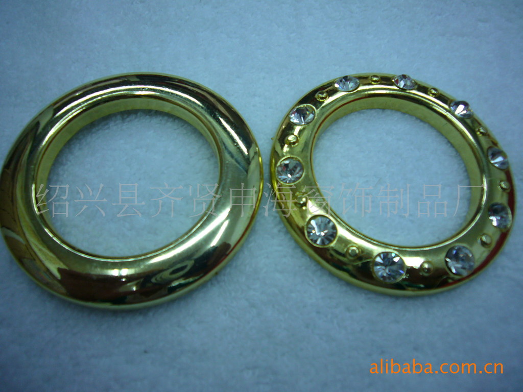 本公司镶钻石系列窗帘圈产品采用ABS材料,喷涂及镶钻工艺制作而成,有喷金、沙银、光紫、二红、金色、银色6种颜色。