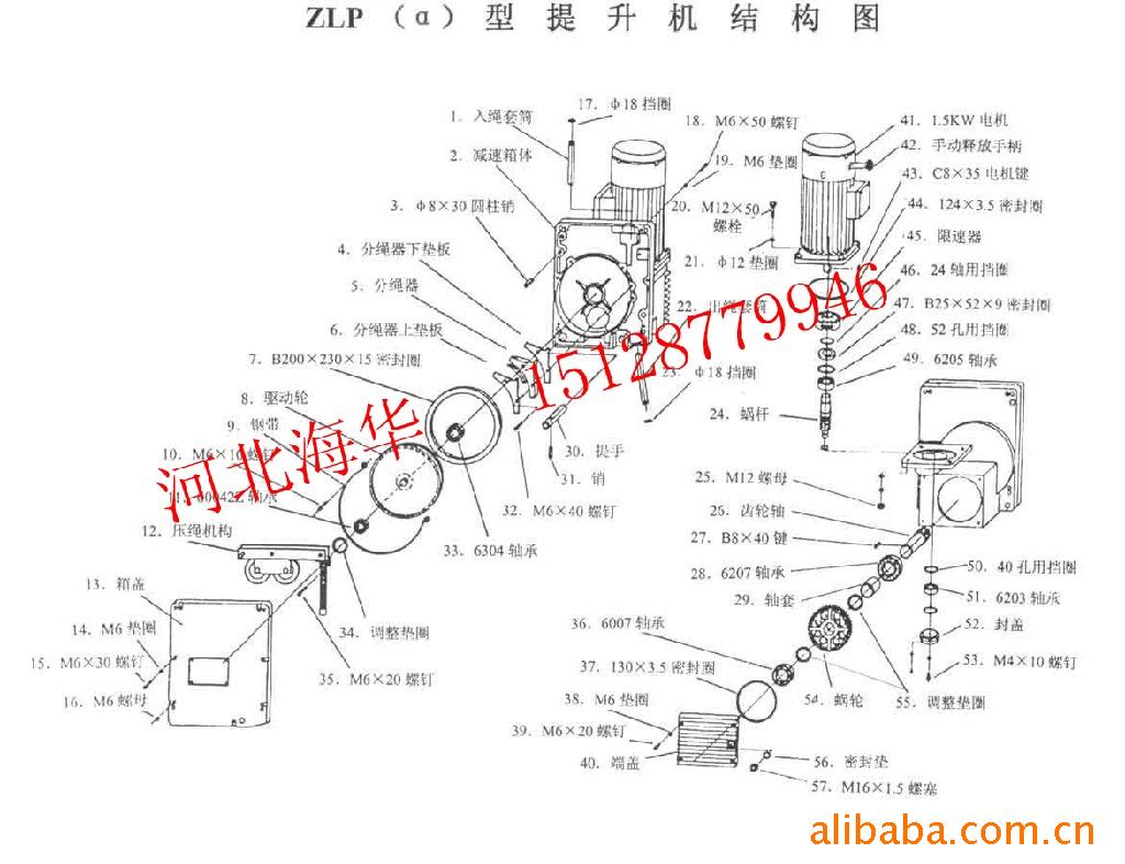 平台长度 | 额定载重 | 提升速度 | 电机功率 | 制动力矩 | 钢丝绳 | 提升高度 | 电源 |