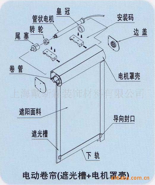 专用管状电机的一种轻型电动化卷帘机构,管状电机安装在电动卷帘卷管中,电机旋转带动卷管转动,使面料开启和闭合。