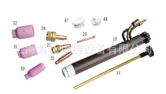 该枪枪头夹持部位采用高强度复合材料制成,抗挤压能力强,变形小,特别适合自动氩弧焊接。实用性强,其易损件:瓷嘴、导流件、钨针夹和WP-18系列焊枪通用。