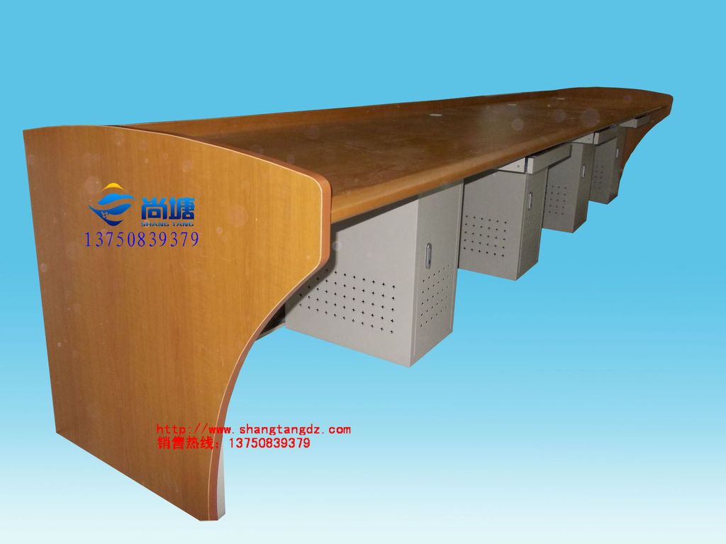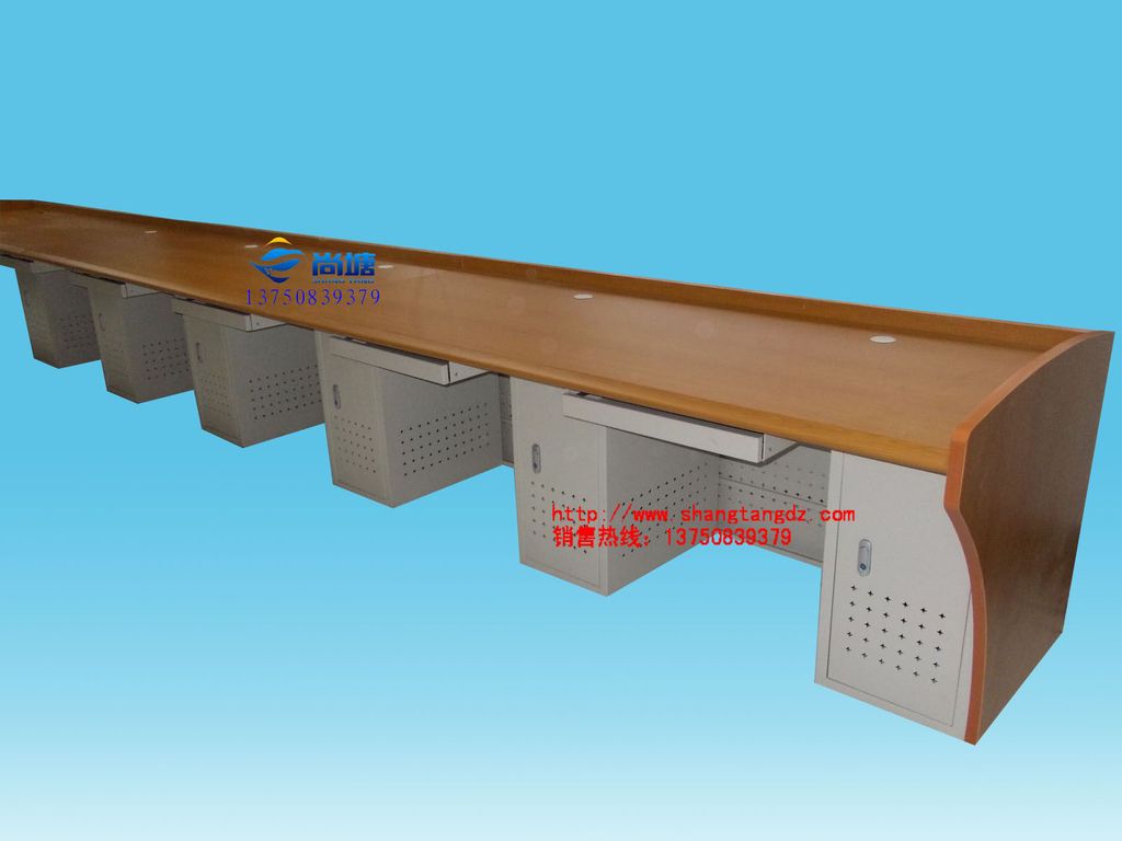 杭州尚塘电子生产单联、双联、三联、四联、多联体控制台按人机最佳配合尺寸设计,符合人体工程学理论要求。具有结构合理、工艺先进、色彩协调、安装方便等特点。可以单独使用亦可多台连用,满足多种组合需要。顶面设计有平顶式(普通版)和豪华版(顶面铝合金包边,台为密度板包边简称钢木结构),工作台面的长度可以根据用户的要求进行设计。适用于广播电视、闭路监控、指挥中心等多种行业。