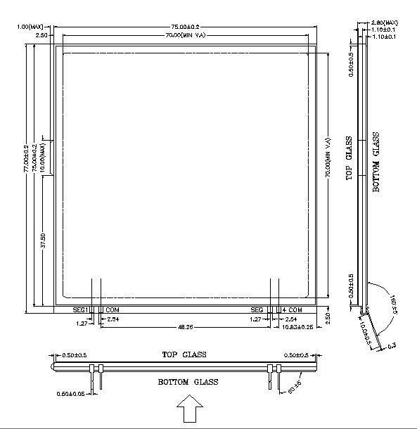 2、外形尺寸:75.0*77.0/75.0*2.8mm